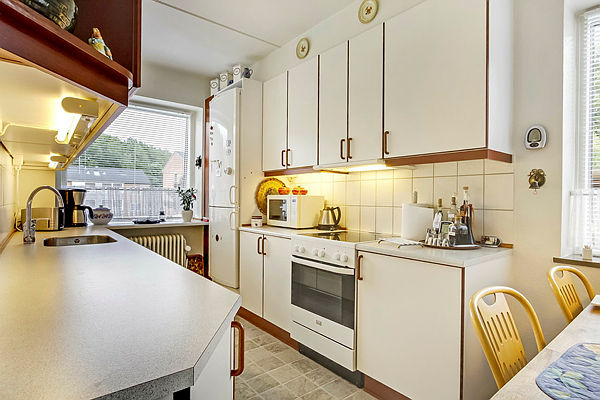 I alle boliger er der komfur og emhætte. Der er løbende renoveret køkkener.