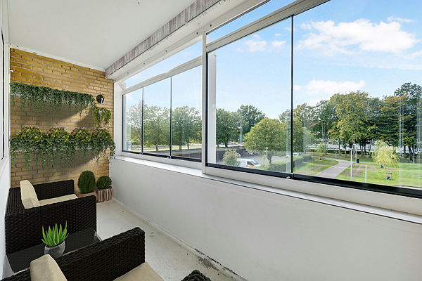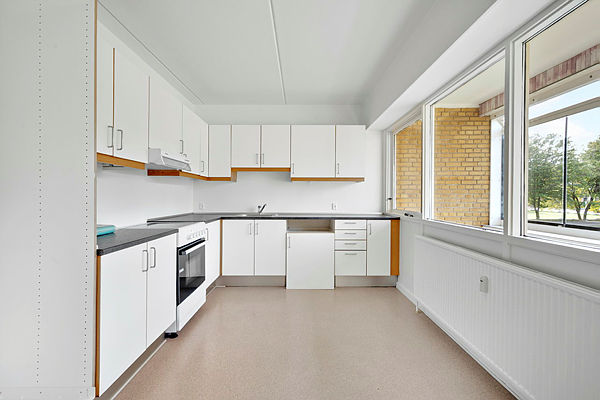 Der er store og praktiske køkkener i alle lejemål, og der er bryggers i forbindelse med køkkenet i de 3- og 4-værelses lejemål. Til alle boliger er der store altaner med lukket glasparti.