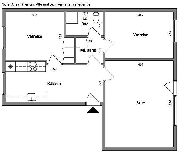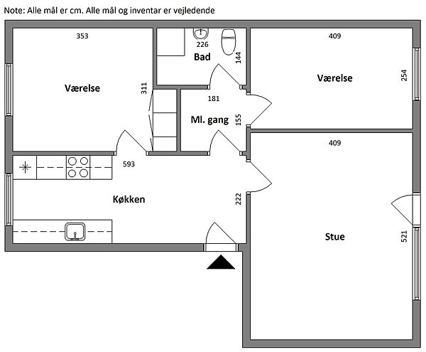 4 vær. boliger under 90 m2 kan udlejes som 3 vær. boliger.