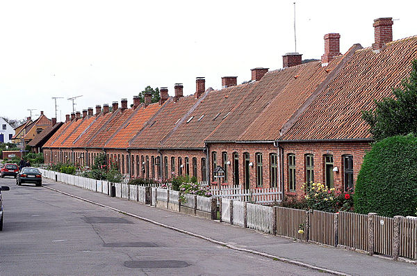 Ældre rækkehuse i ét plan i skønne omgivelser.