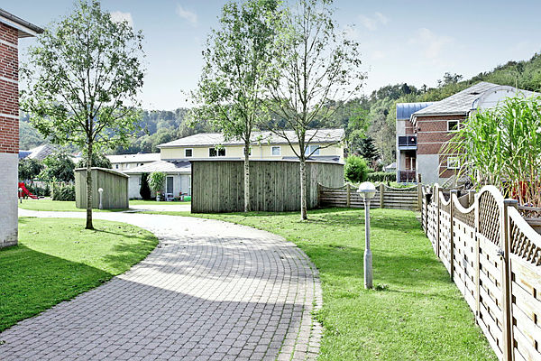 Her er der plads til leg, hygge og afslapning i perfekte rammer med hyggelige kroge og grønne områder, som kun venter på at blive brugt. Åen snor sig langs området og giver en rolig og rar atmosfære.