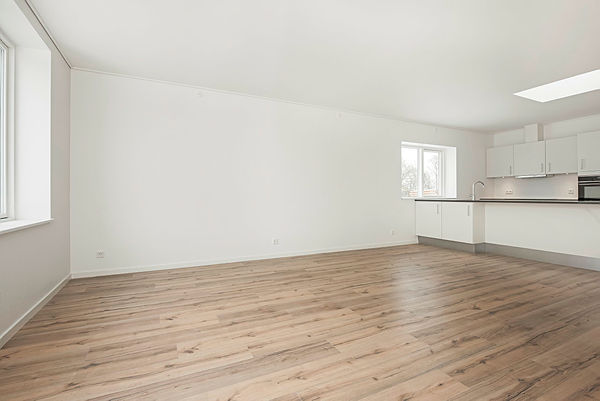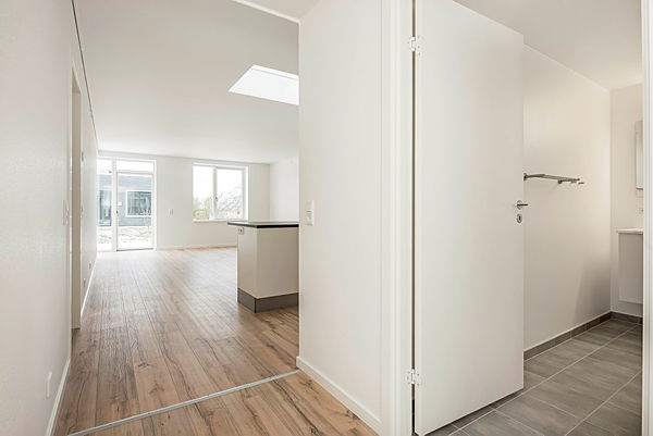 Boligerne er bygget med fladt tag, hvori der er etableret ovenlys som bringer lyset dybt ind i boligerne.